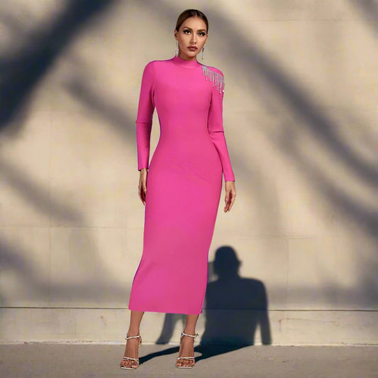 Crystal Accent Tassel Bandage Dress