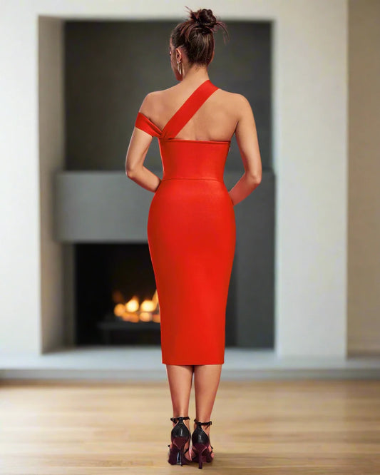 Embellished Neck Hanging Off The Shoulder Bandage Dress
