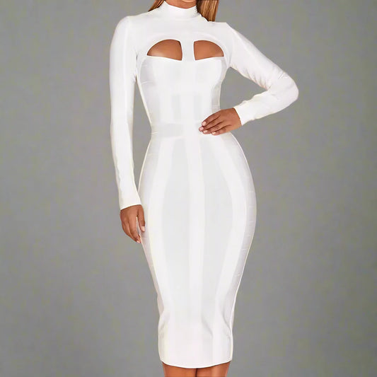 Cut Out Long Sleeve Turtleneck Bandage Dress