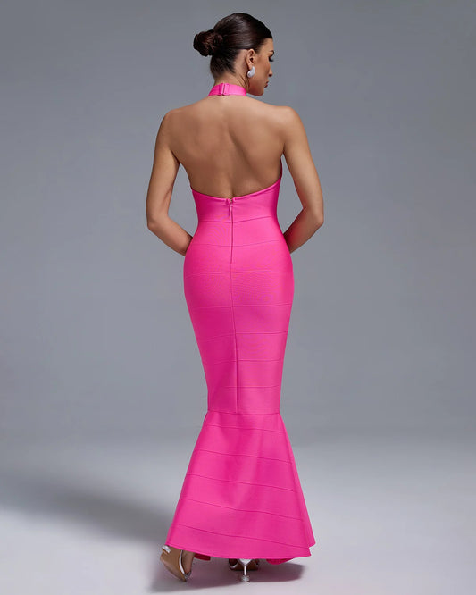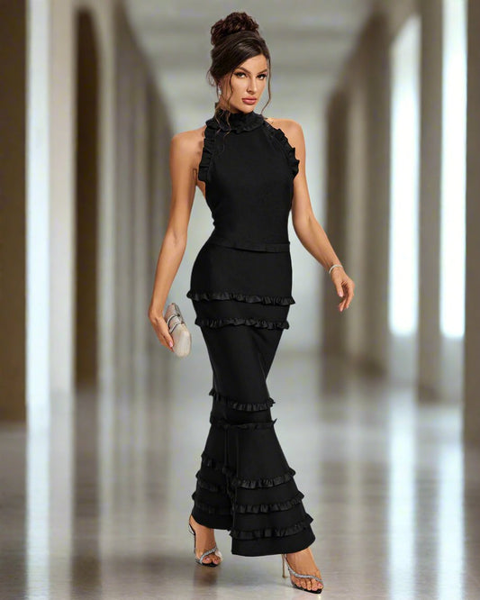 Halter Open Back Ruffle Mermaid Bandage Dresses