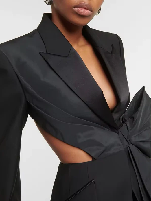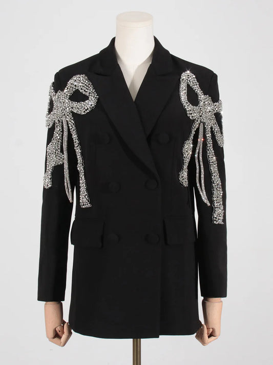 Sparkly Rhinestone Ribbon Double Breasted Oversize Blazer