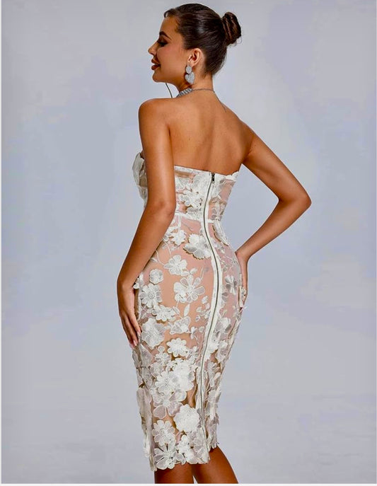 Elegant 3D Bow High Slit Evening Bandage Dress