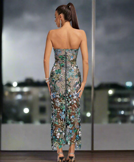 Embellished Neck Hanging Off The Shoulder Bandage Dress