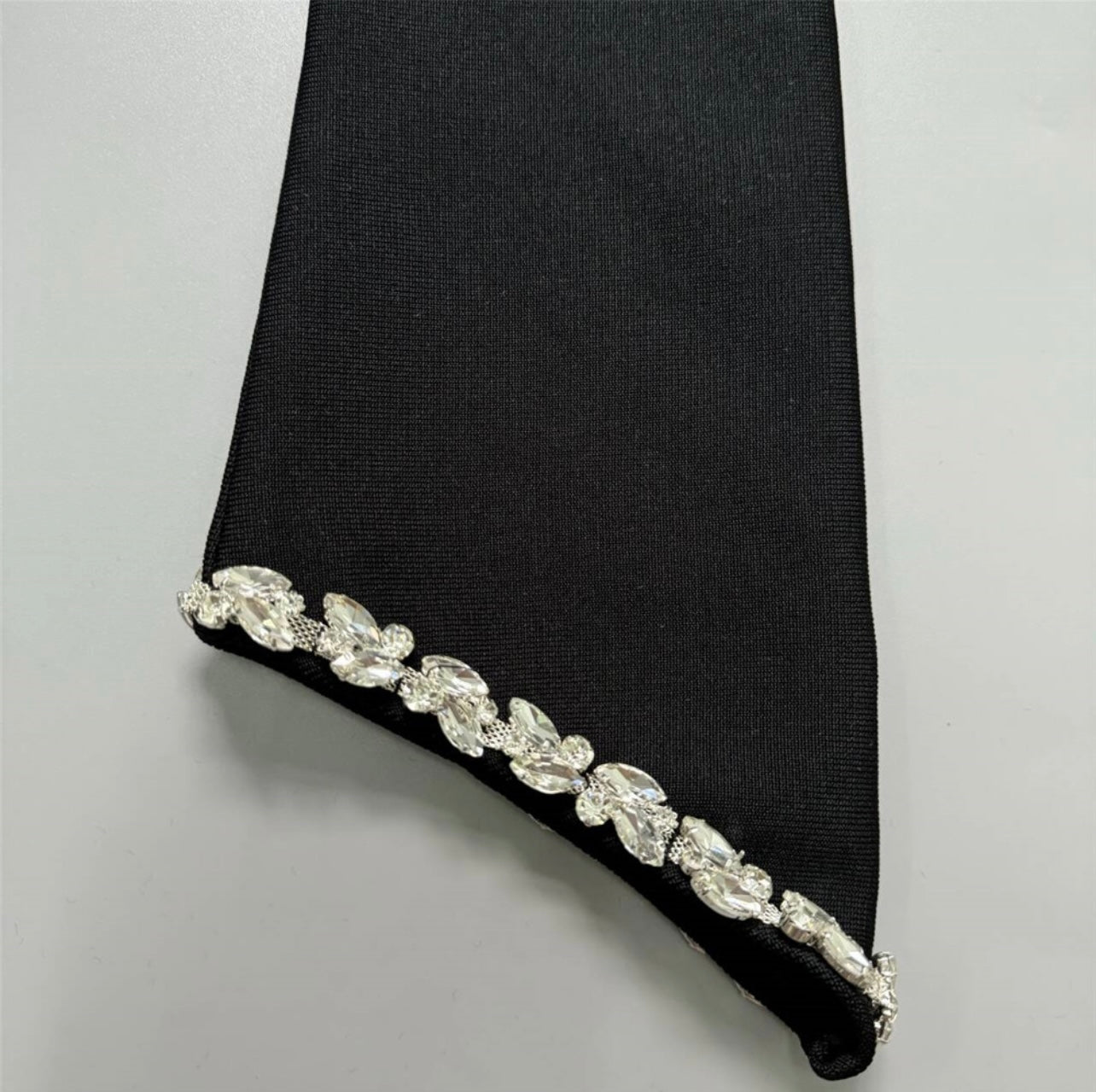 Dress to impress in our Crystal Trim Long Sleeve Bandage Dress. With its intricate crystal trim and figure-hugging bandage material, you'll be the center of attention at any event. Made with quality and style in mind, this dress is perfect for showcasing your confidence and elegance.
