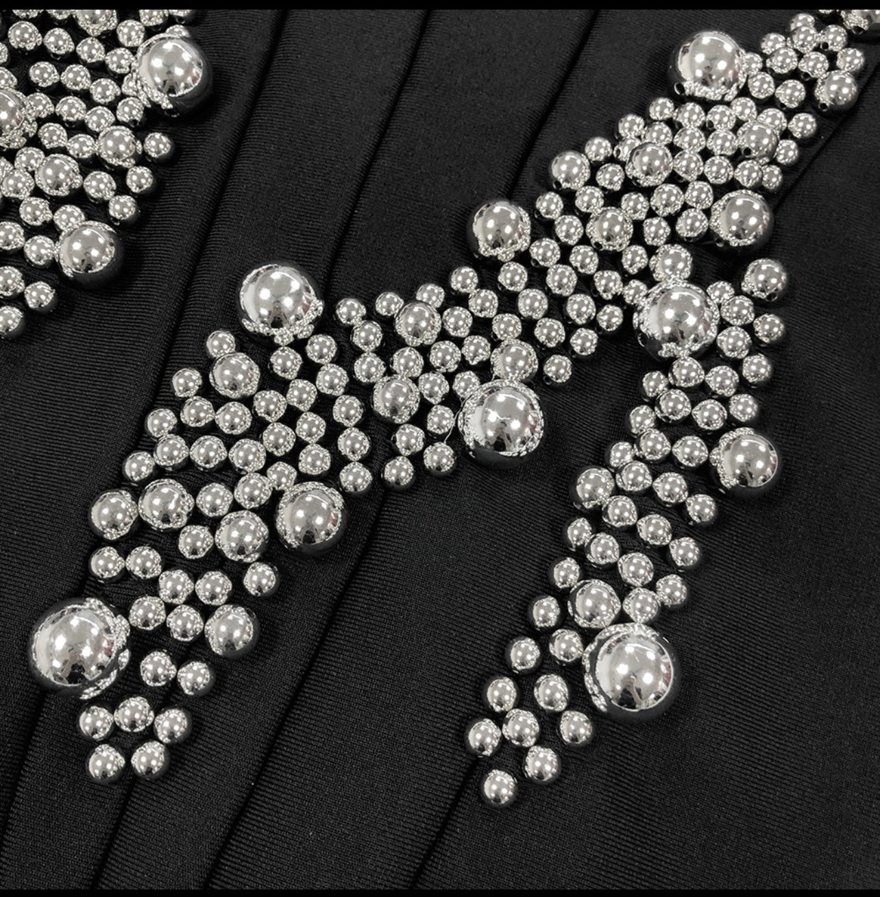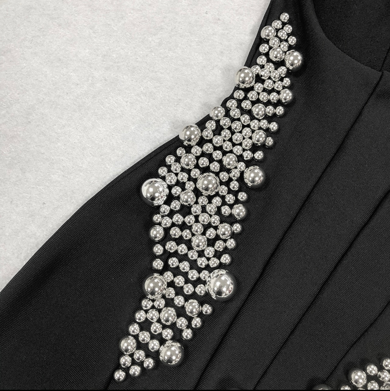 This elegant Pearl Embellished Corset Bandage Mini Dress exudes sophistication and style. The pearl embellishments add a touch of luxury, while the corset design cinches the waist for a flattering silhouette. Perfect for any special occasion, this dress will make you feel confident and glamorous.